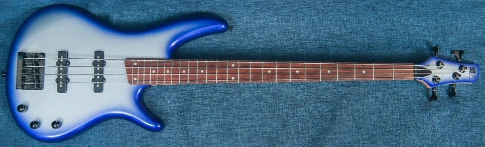 The SR380 features a double-cutaway basswood body bolted to a maple neck with a 24-fret rosewood fingerboard with white dots position markers and a matching headstock. Components include an Standard fixed bridge with 19mm string spacing, and a pair of Ibanez WJ1 pickups, a plastic nut, black hardware and Die-cast tuning machines.