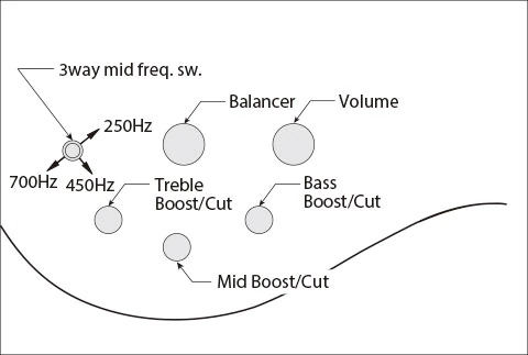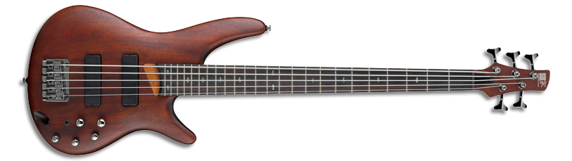 The SR505 features a double-cutaway mahogany body bolted to a wenge and bubinga SR5 neck with a 24-fret rosewood fingerboard with abalone oval position markers. Components include a pair of Bartolini MK1-5 passive pickups with a Bartolini MK1 preamp with a 3-band EQ, an Accu-cast B25 fixed bridge with 16.5mm string spacing, a plastic nut, and Ibanez die-cast tuning machines.