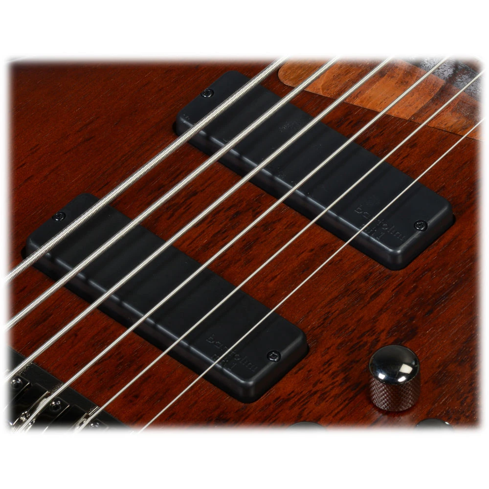 The SR506 features a double-cutaway mahogany body bolted to a wenge and bubinga neck with a 24-fret rosewood fingerboard with abalone oval position markers. Components include a pair of Bartolini MK-1 passive pickups with an EQB-IIIS 3-Band EQ with mid-frequency toggle, an Accu-cast B106 bridge with 16.5 mm string spacing, a plastic nut and Gotoh tuning machines.