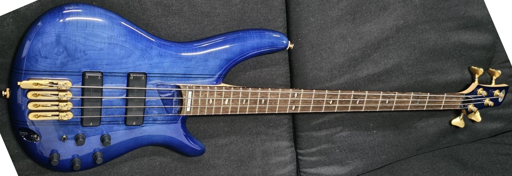 The SR7100 features a double-cutaway maple body bolted to a SR maple neck with a 24-fret wenge fingerboard with abalone ovals position markers with "Custom Made" inlay at 24th fret and a matching headstock. Components include a Mono-rail bridge with D-tuner on the bass ("E") string and 19mm string spacing, and a pair of Bartolini humbucking pickups channeled through a Bartolini preamp with 3-band EQ, a plastic nut, gold hardware and deluxe Gotoh 510 tuning machines.