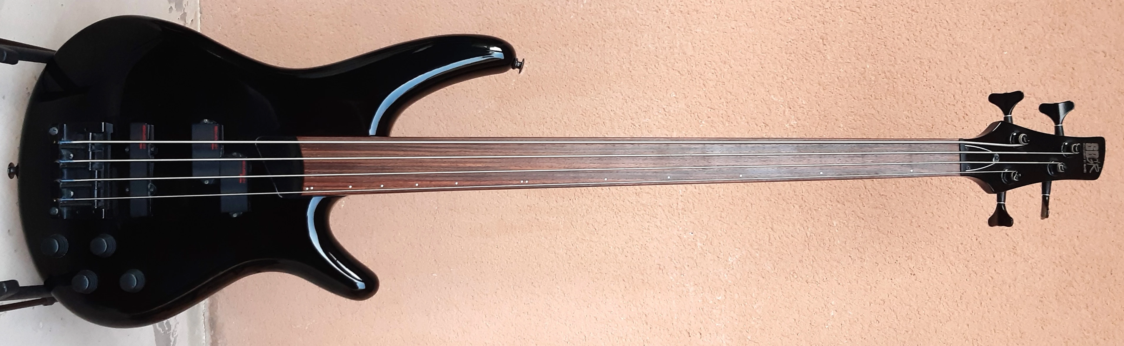 The SR800F features a double-cutaway basswood body bolted to a maple neck with a 24-fret rosewood fretless fingerboard and a matching headstock. Components include a Omni Adjust fixed bridge with 19mm string spacing, and a pair of Ibanez Lo-Z-P/J pickup's chanelled to a EQ BⅡ 2 band equalizer, a plastic nut, black hardware and gotoh tuning machines.