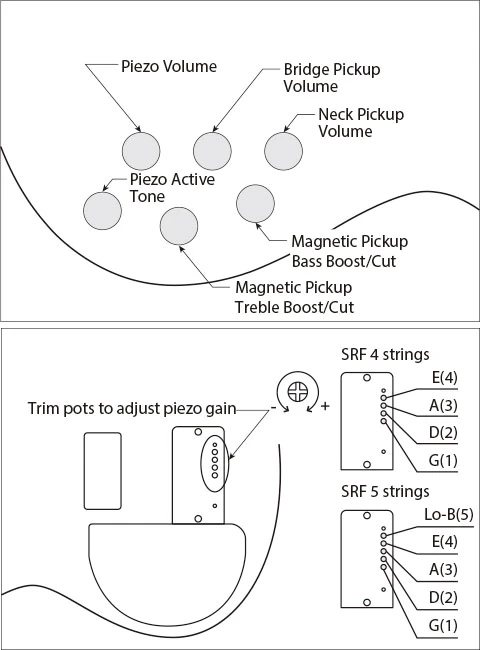 The SRF700 and SRF706 are four and six string versions, respectively.
