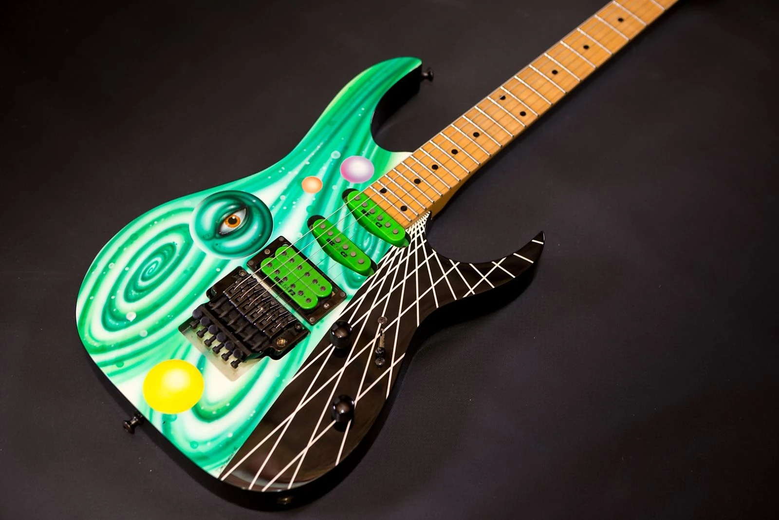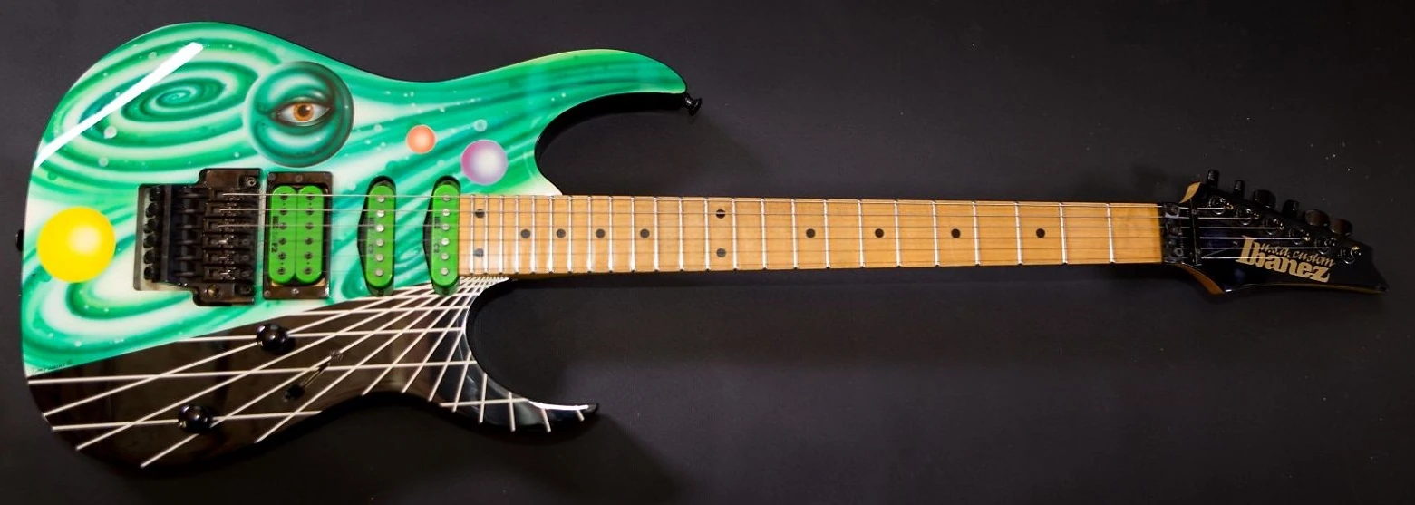 The UCGR12 is an RG series solid body electric guitar model introduced by Ibanez in 1991. It was produced in the United States as part of the Graphic Design series of the USA Custom line. The Graphic Design models feature bodies which are handpainted by "some of the most skilled and imaginative artists in America".[1]