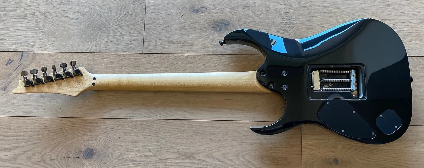 This represents only the "stock" configuration, as customers could customize the guitar to their own desires. The customer could select the pickup configuration and pickups, the fretboard material and inlays, the headstock, the hardware color and more.