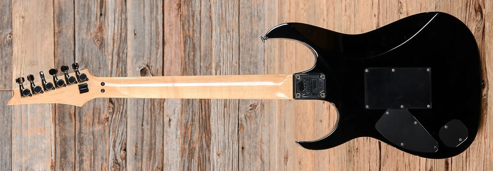 The UCGR Streetwise features a basswood body bolted to a maple neck with a 24-fret bound rosewood fingerboard with white dots ( or "sharktooths" ) position markers. Components include a DiMarzio-made IBZ/USA F3 humbucking pickup at the bridge paired with IBZ/USA C2 single-coil at the middle and a IBZ/USA C2 single-coil at the neck positions, an Edge double locking tremolo bridge, a locking nut and Gotoh tuning machines.