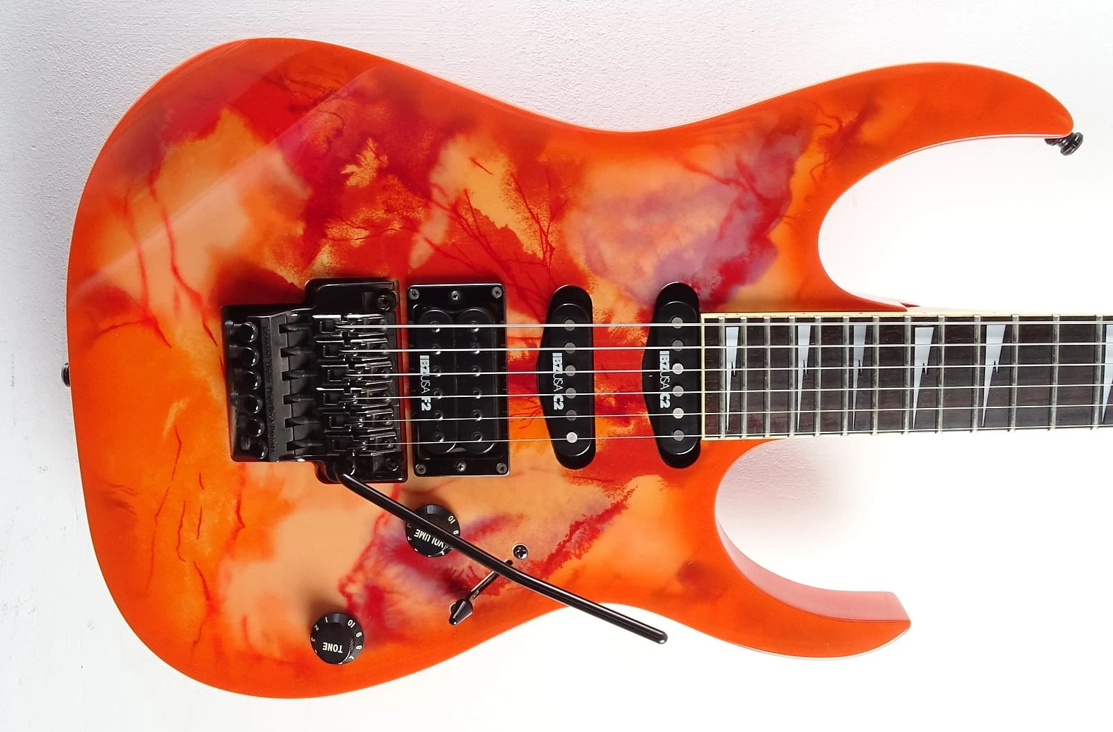 The UCGR Purple Marble is an RG series solid body electric guitar model introduced by Ibanez in 1991. It was produced in the United States as part of the Graphic Design series of the USA Custom line.